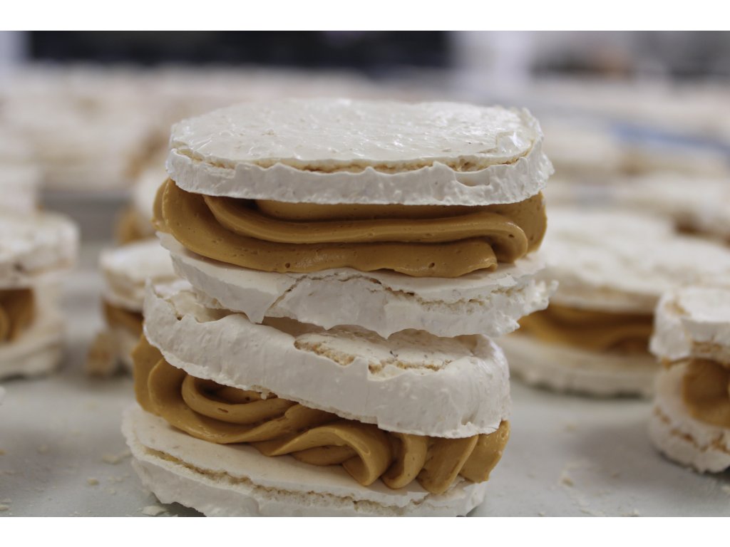 Chrumkavé laskonky z vlašských orechov plnené bohatým karamelovým krémom. Jemné, sladké a ideálne ako dezert či sladká pochúťka ku káve či čaju.